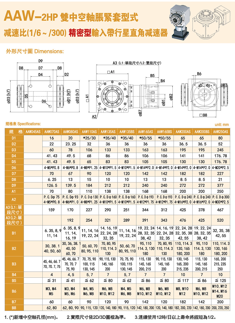 AAW-2HP雙中空軸脹緊套型式 精密輸入帶行星直角減速器