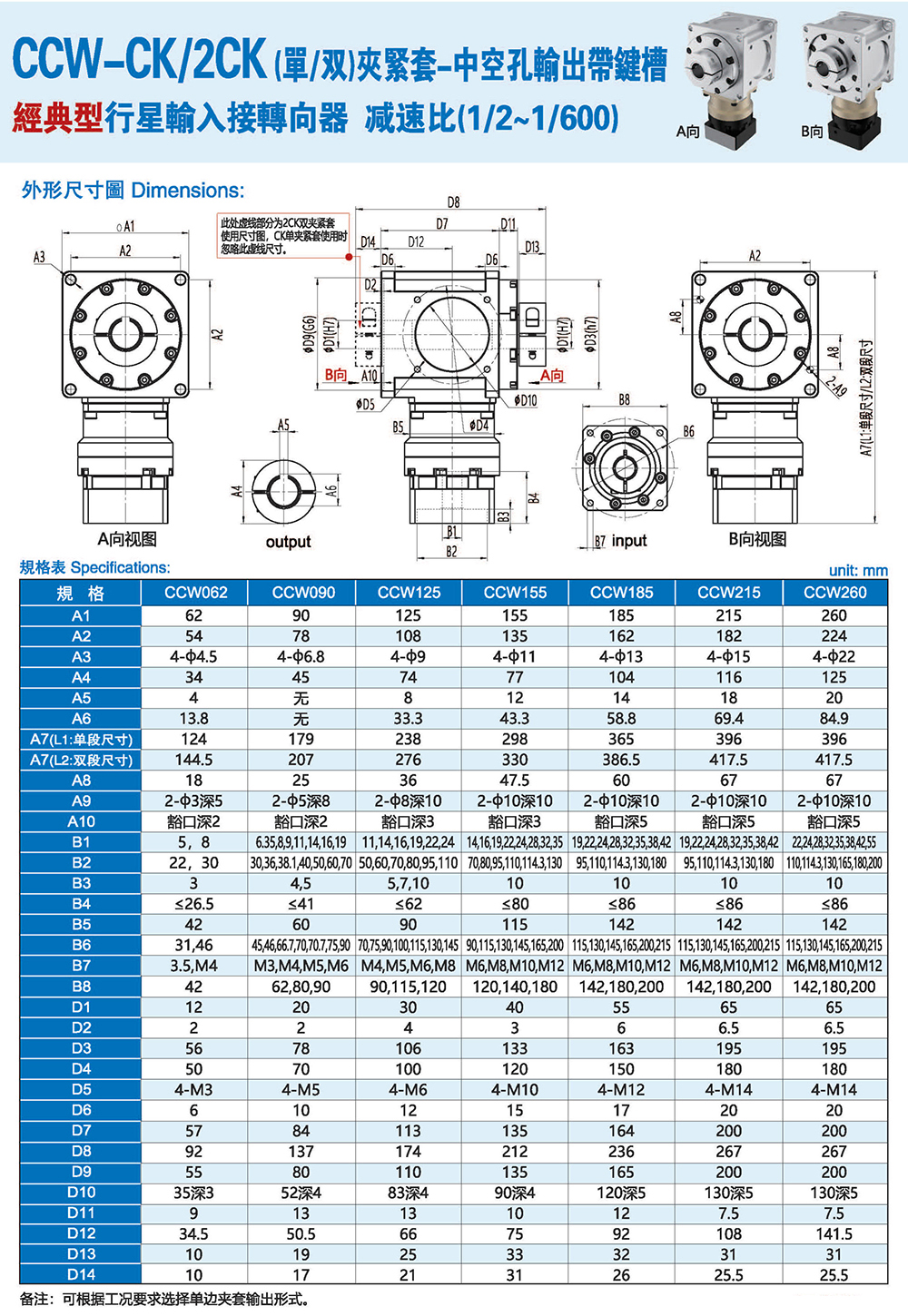 CCW-2CK 雙夾緊套-中空孔輸出帶鍵槽 經(jīng)典型行星輸入接轉(zhuǎn)向器