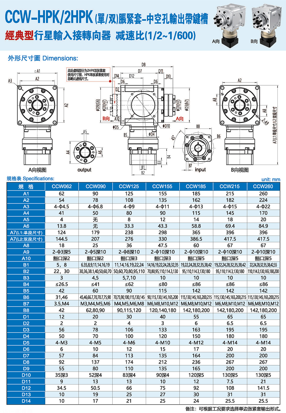 CCW-HPK單脹緊套-中空孔輸出帶鍵槽 經(jīng)典型行星輸入接轉(zhuǎn)向器
