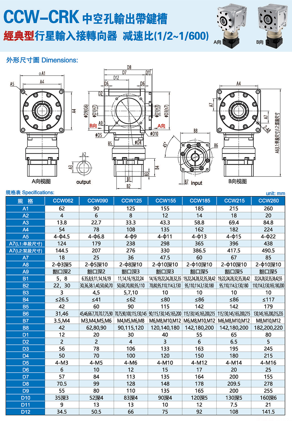 CCW-CRK中空孔輸出帶鍵槽 經(jīng)典型行星輸入接轉(zhuǎn)向器