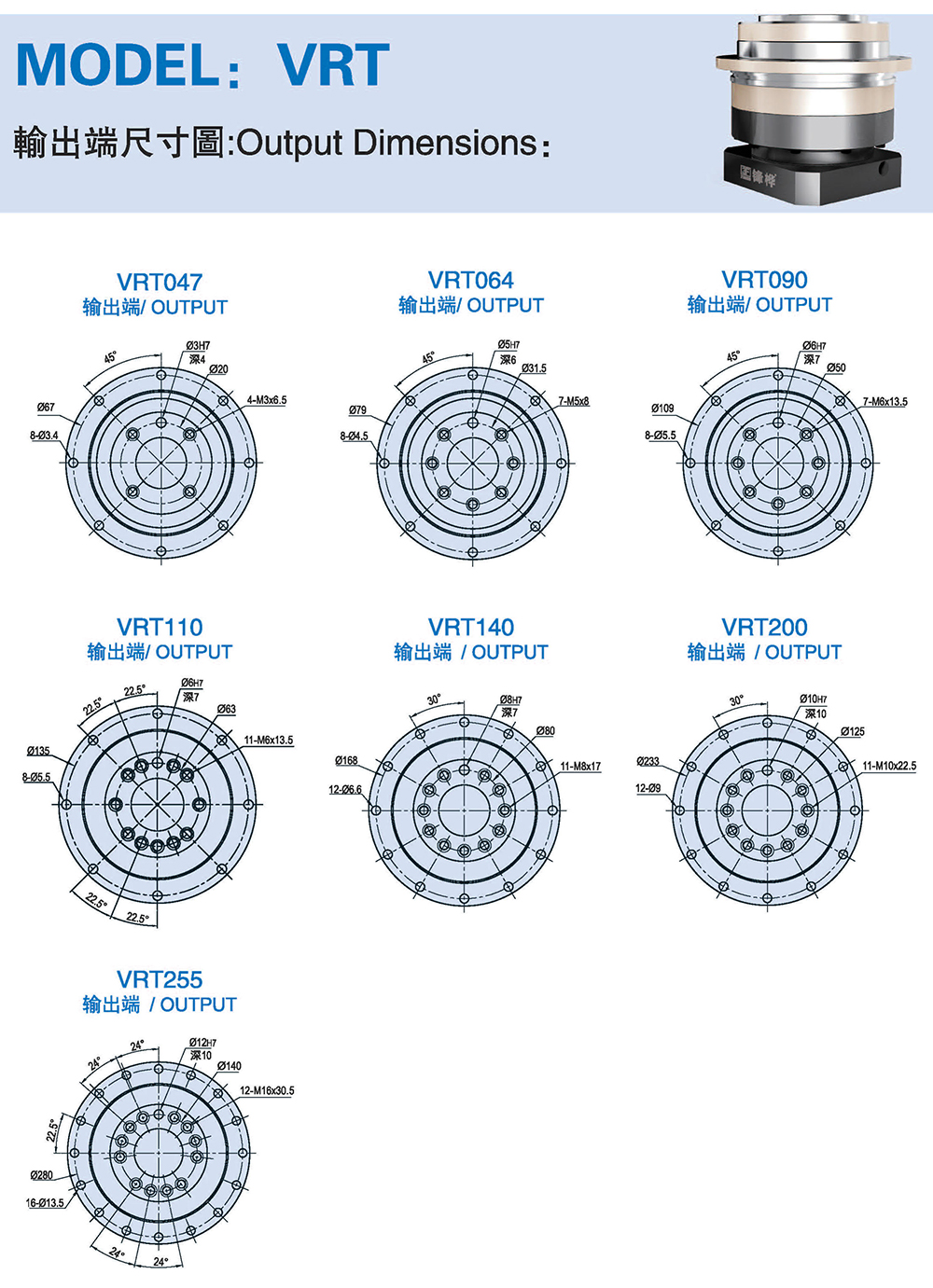 輸出軸形式新增了法蘭盤面輸出,底座安裝,可用于大負載旋轉平臺應用使用。