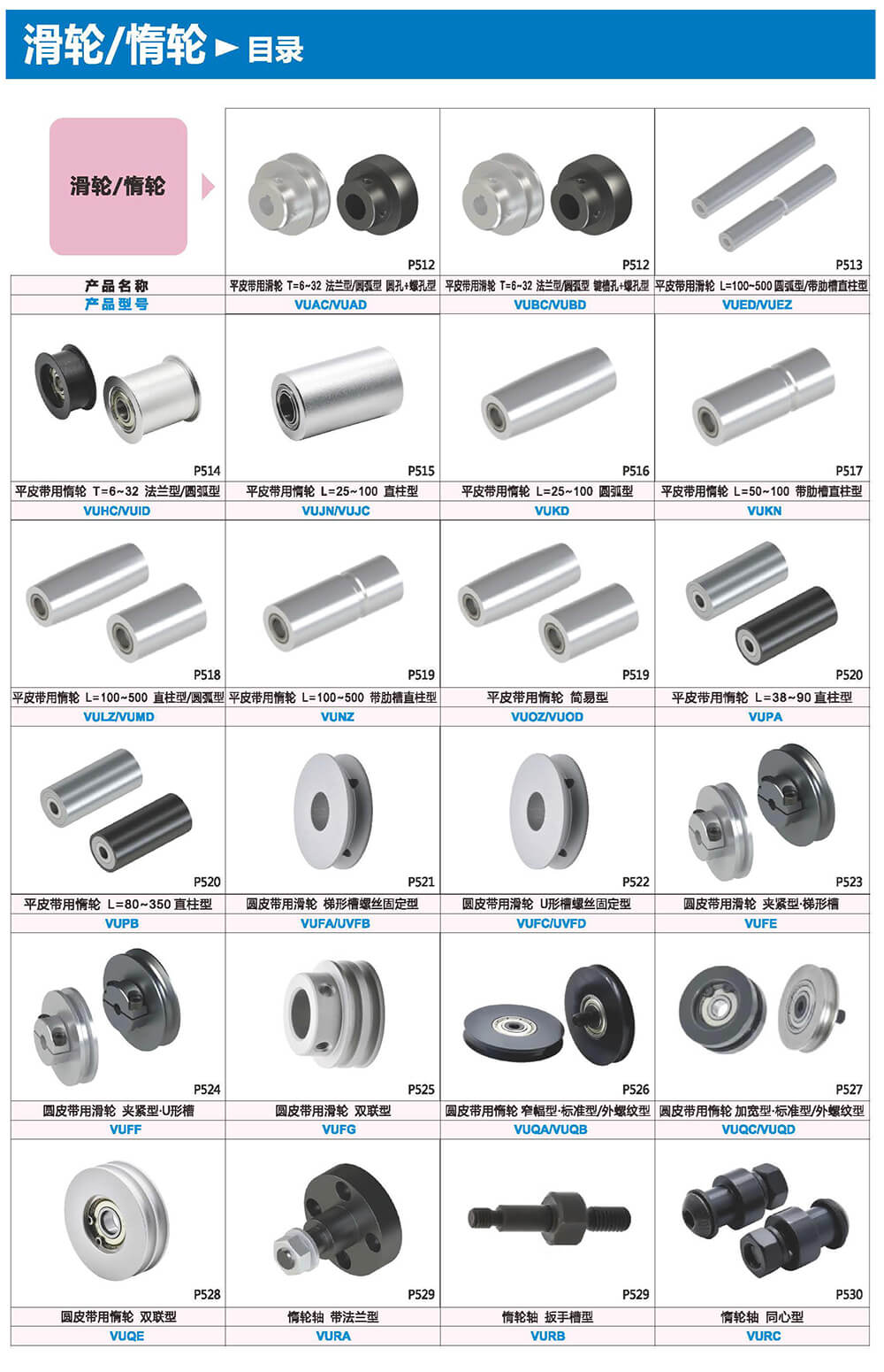 滑輪惰輪在機(jī)械設(shè)備中與平皮帶圓皮帶配合使用,起到動力傳遞、輸出、過渡、皮帶張緊用等,用于皮帶張緊時也可稱作張緊輪