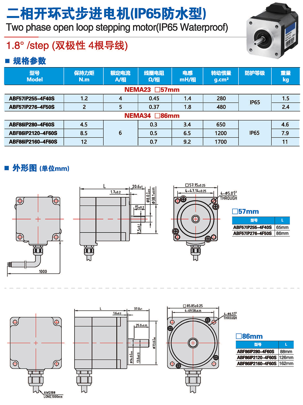 2相開環(huán)步進(jìn)電機(jī)(IP65防水型)