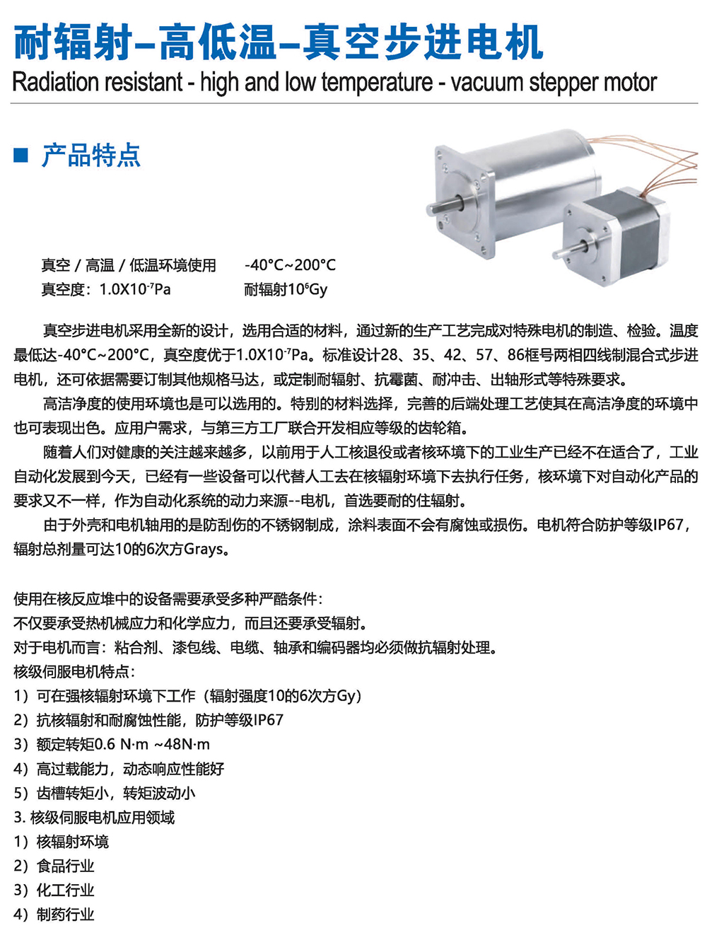 使用在核反應(yīng)堆中的設(shè)備需要承受多種嚴(yán)酷條件:不僅要承受熱機(jī)械應(yīng)力和化學(xué)應(yīng)力,而且還要承受輻射。對于電機(jī)而言:粘合劑、漆包線、電纜、軸承和編碼器均必須做抗輻射處理。