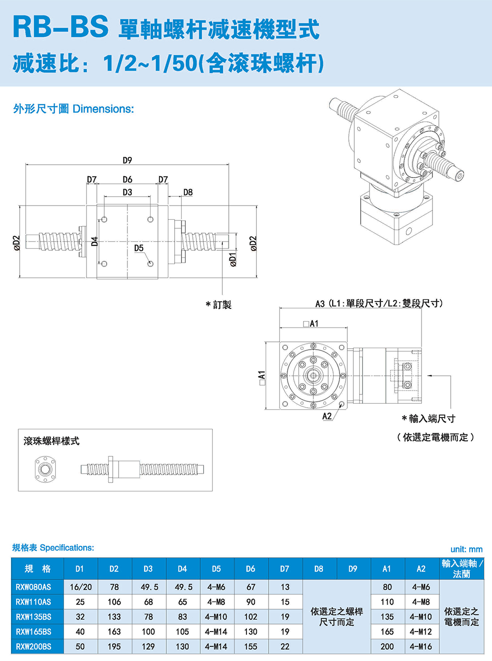 減速比:單段1:3~1:10雙段:1:12~12:100