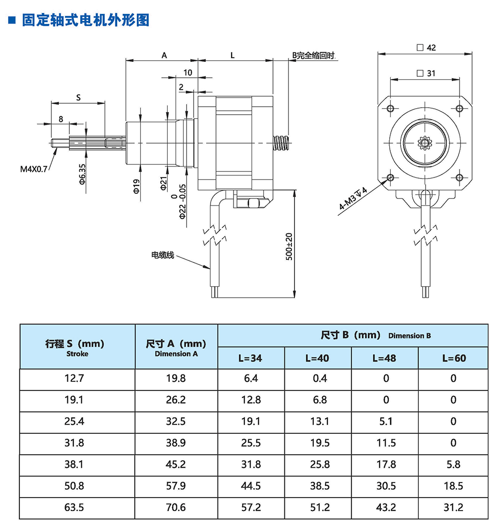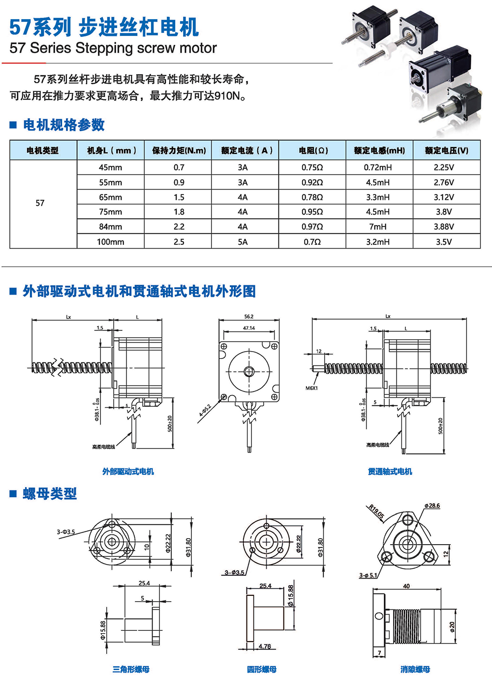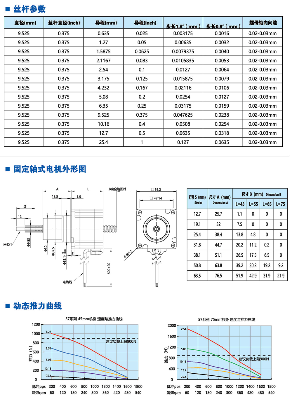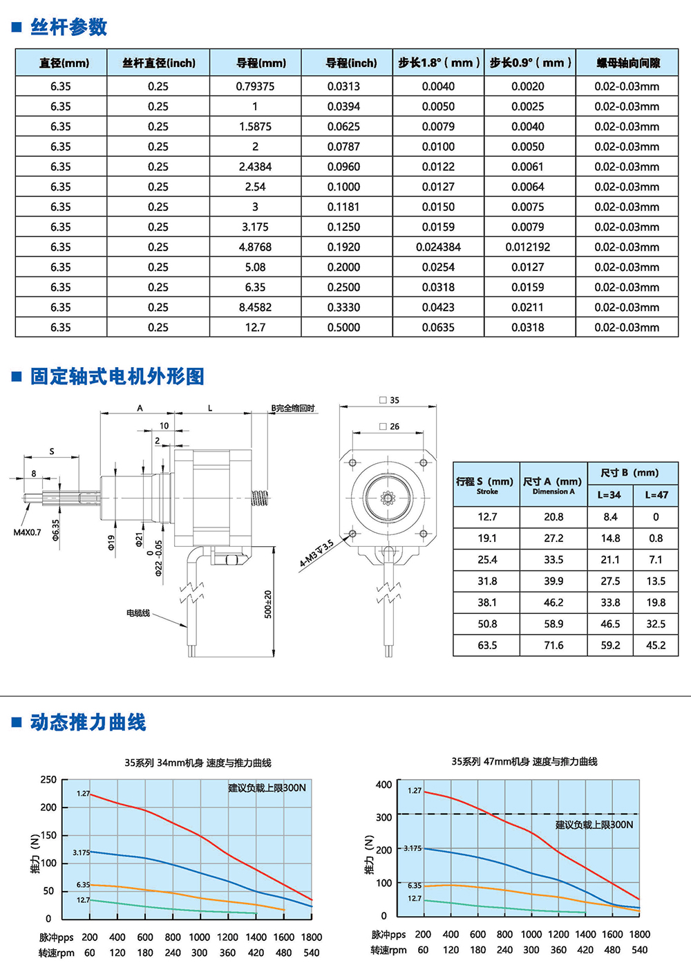 絲桿步進電機系列產(chǎn)品提供了簡單有效的直線運動方案,簡化了從旋轉(zhuǎn)運動到 直線運動的轉(zhuǎn)化過程,它將運動的轉(zhuǎn)換過程在電機本體完成,不再需要皮帶、齒輪 齒條、聯(lián)軸器和其他機械部件來實現(xiàn)旋轉(zhuǎn)運動到直線運動的轉(zhuǎn)換,大大節(jié)省了零部 件的采購成本和系統(tǒng)組裝時間,有效解決了因多次轉(zhuǎn)接造成的精度損失,提高 了結(jié) 構(gòu)空間的利用率和定位精度。我司的產(chǎn)品結(jié)構(gòu)簡單、緊湊,適用于500mm行程內(nèi)運 行,步進分辨率小為0.0015mm,推力可達200多公斤力。