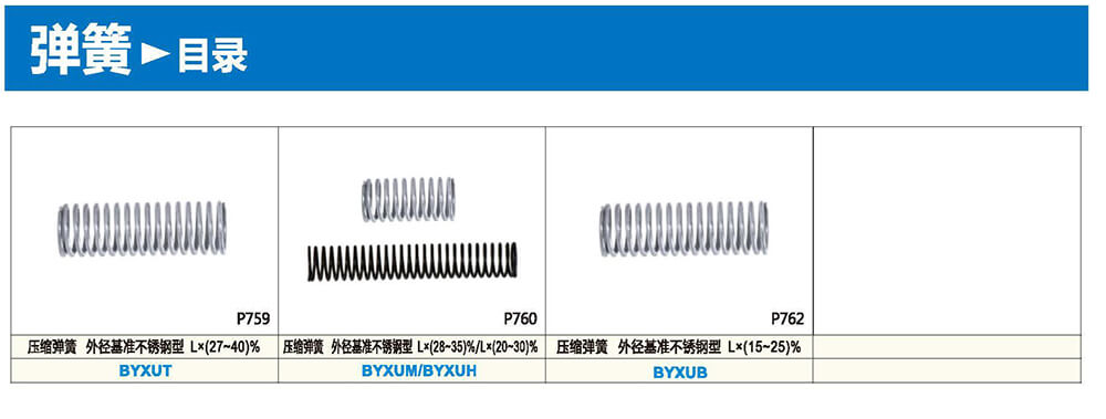 1.圓形截面壓縮彈簧:是承受軸向壓力的螺旋彈簧,它所用的材料截面為圓形。一般為等節(jié)距的,壓縮彈簧的圈與圈之間有一定間隙,當(dāng)受到外載荷時彈簧會收縮變形。其剛度穩(wěn)定,結(jié)構(gòu)簡單,制造方便,應(yīng)用較廣。