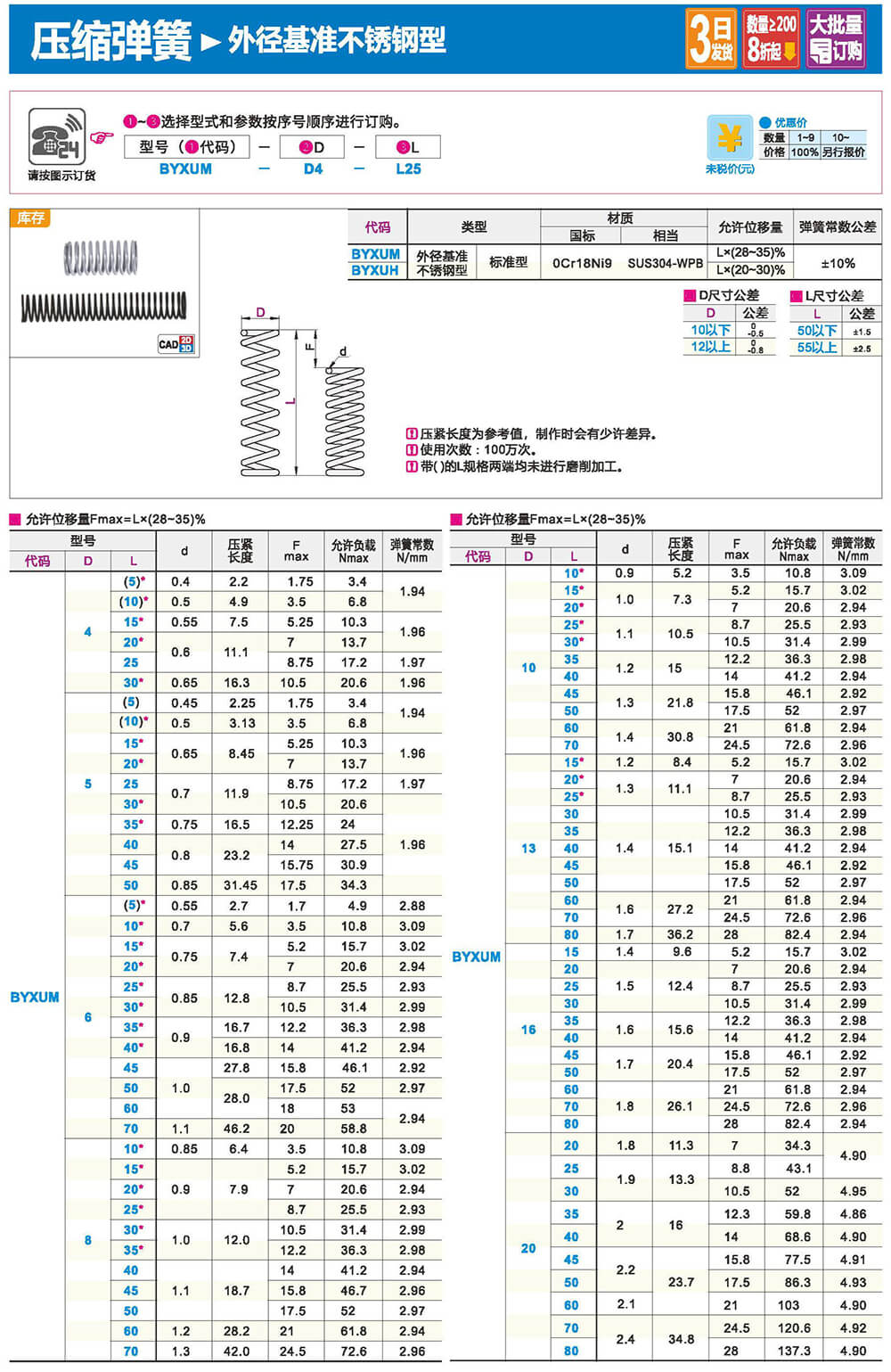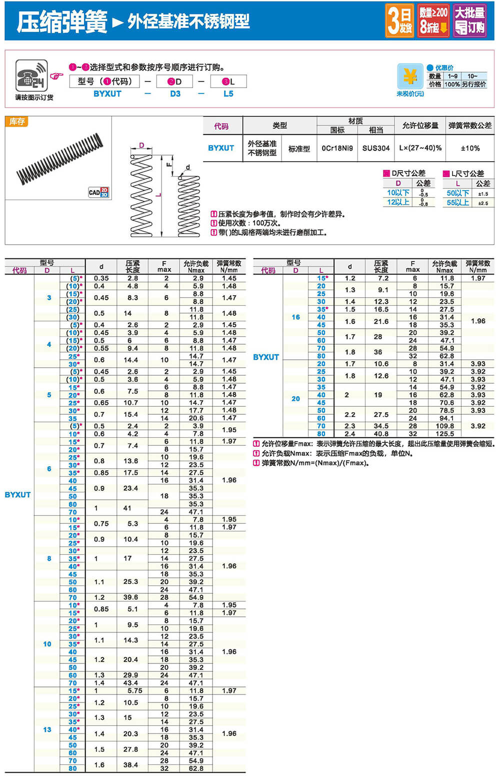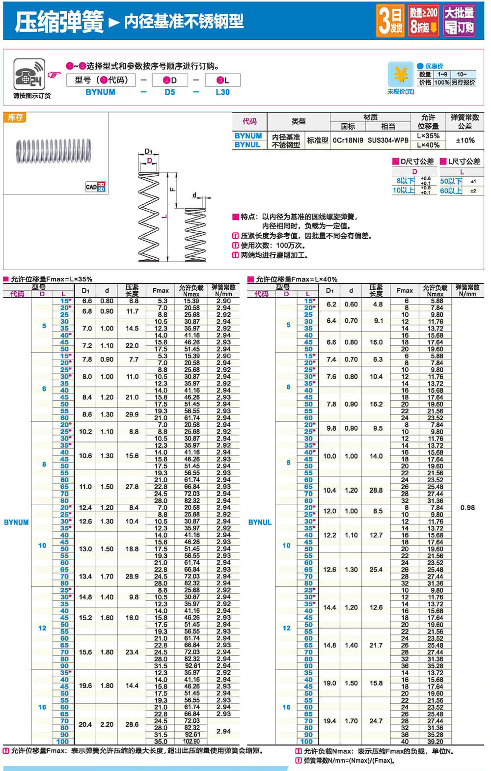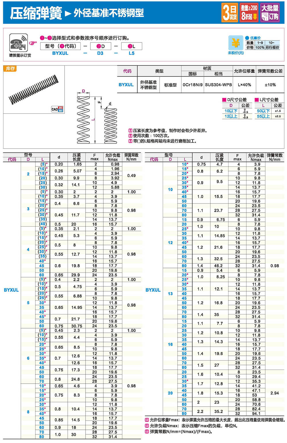 1.圓形截面壓縮彈簧:是承受軸向壓力的螺旋彈簧,它所用的材料截面為圓形。一般為等節(jié)距的,壓縮彈簧的圈與圈之間有一定間隙,當(dāng)受到外載荷時(shí)彈簧會(huì)收縮變形。其剛度穩(wěn)定,結(jié)構(gòu)簡單,制造方便,應(yīng)用較廣。
