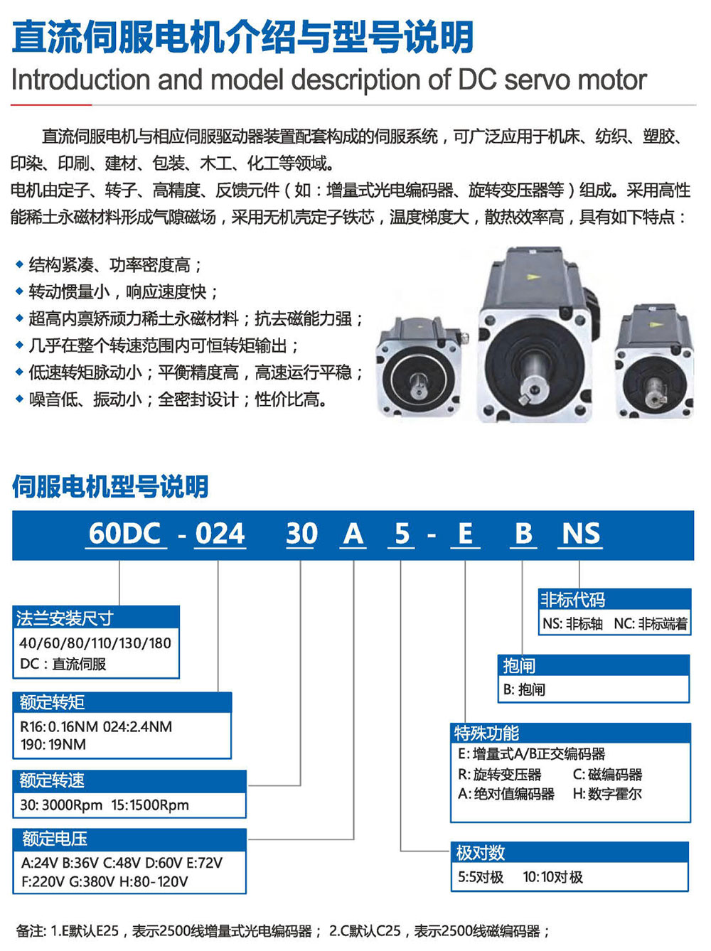 直流伺服電機(jī)與相應(yīng)伺服驅(qū)動(dòng)器裝置配套構(gòu)成的伺服系統(tǒng),可廣泛應(yīng)用于機(jī)床、紡織、塑膠、印染、印刷、建材、包裝、木工、化工等領(lǐng)域。電機(jī)由定子、轉(zhuǎn)子、高精度、反饋元件(如:增量式光電編碼器、旋轉(zhuǎn)變壓器等)組成。采用高性能稀土永磁材料形成氣隙磁場,采用無機(jī)殼定子鐵芯,溫度梯度大,散熱效率高,具有如下特點(diǎn):