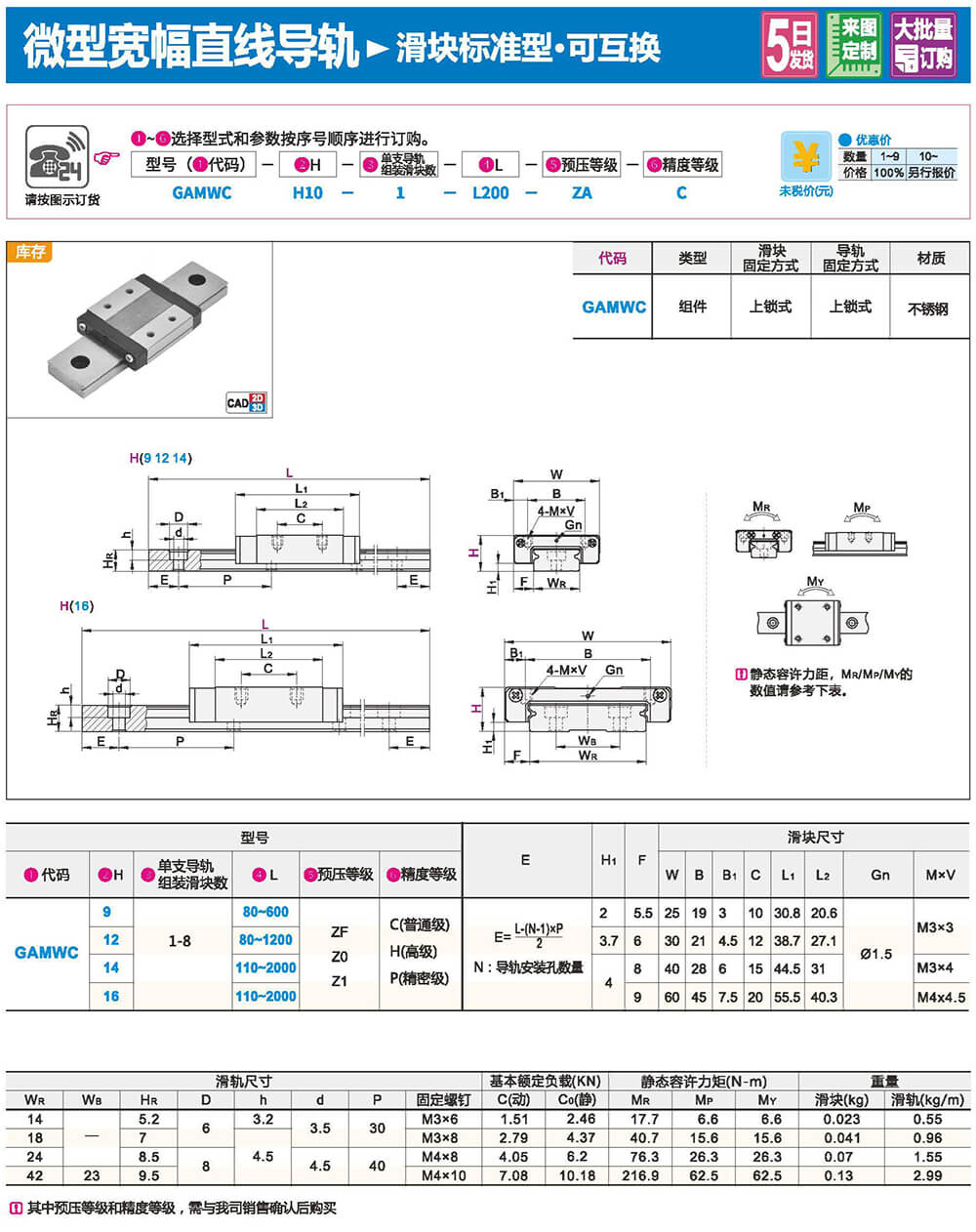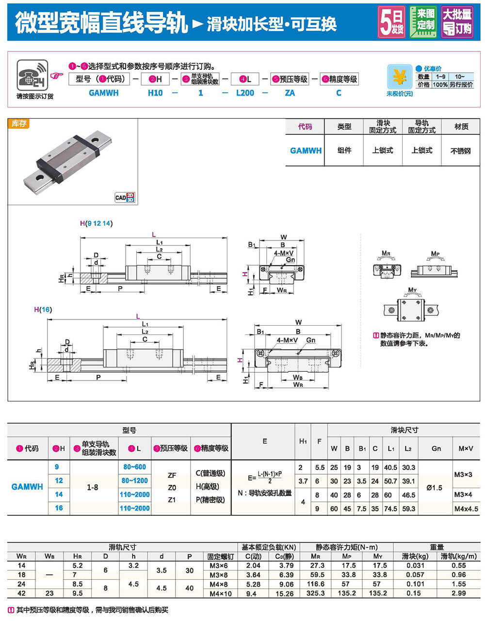 微型寬幅直線導軌